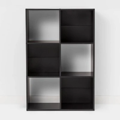 Give your traditional bookshelf a modern update with the 6 Cube Organizer Shelf from Room Essentialsâ„¢. The cube openings are great for storage and compatible with 11″ storage bins. This item can be displayed horizontally or vertically and is stackable in horizontal orientation. Perfect for organizing any room in the home. This cube organizer shelf comes with all hardware included. To clean, wipe with a dry cloth.