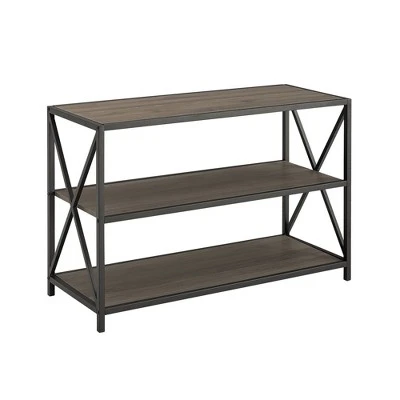 Showcase your books, magazines, media and more with the Frame Metal and Wood Media Bookshelf from Saracina Home. The combination of faux wood and metal creates texture and personality that will still complement any style of decor. Consider this three-shelf console table with storage to organize cluttered living and family areas.