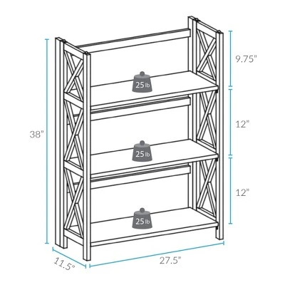 Sturdy and stackable, the X-Design 3-Shelf Folding Bookcase is ideal for any storage. Stackable design allows your storage and home design to grow when you need them to. Effortless foldable engineering means you can transport or store with ease. Constructed from solid wood for increased durability and longevity. No assembly required.