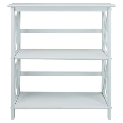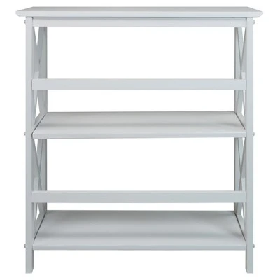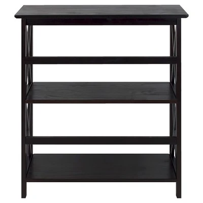 Storage with ease, this Montego X-Design Style Bookcase is constructed with solid wood for lasting use. 3 shelves provide ample storage space. A thorough finish gives this bookcase a strong, contemporary appearance. Perfect for home storage and decor. Light and easy assembly. Wall mount hardware provided. Product dim: 29.5″W x 11.75″D x 34″H. Weight capacity: 25lbs per shelf.