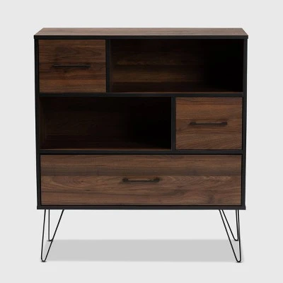 38.98" 1 Drawer Charis Two-Tone Finished Wood Bookshelf Walnut/Black – Baxton Studio