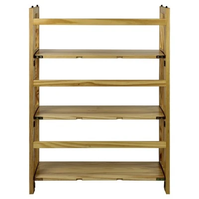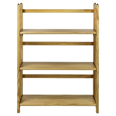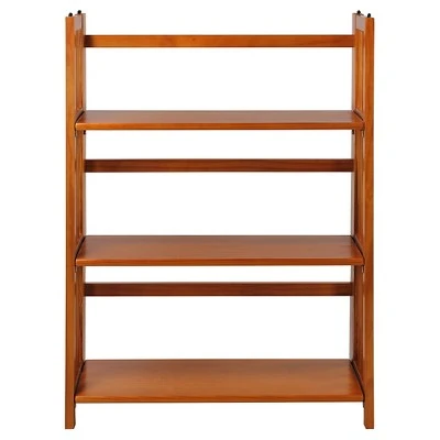 38″ Folding 3 Tier Bookshelf Stackable – Flora Home Walnut