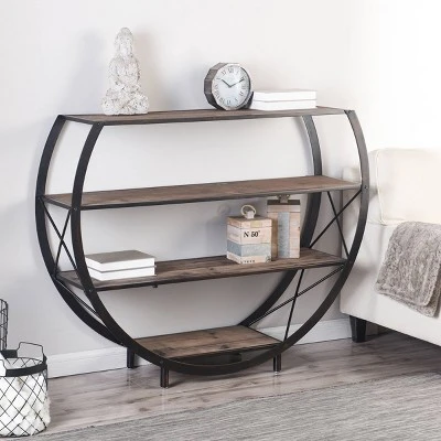 Highlight your space with this Bryan Keith Santa Monica Circle Bookshelf from StyleCraft Home Collection. The perfect place to display your cherished books or knick-knacks. This product has been crafted from wood and metal. Modern decor styles will favor this product. Regardless if you put it in the bedroom or family room, this circle bookshelf stands out as a focal piece. Complete with a wood stain finish, this simple yet on-trend design will lend understated, elegant style to any room. Place it wherever you need extra storage, like the bedroom or foyer. This piece exemplifies superior product design and great styling. It will pair well with mid-century modern styling.