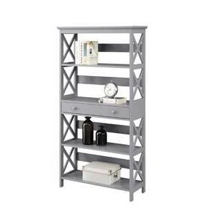59.75" Oxford 5 Tier Bookcase with Drawer Gray – Breighton Home