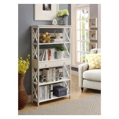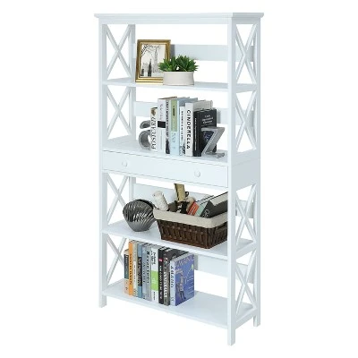 59.75" Oxford 5 Tier Bookcase with Drawer White – Breighton Home