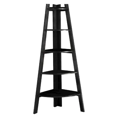 For any room that needs extra flair and storage, get this Lynch Five-Shelf Corner Bookcase from HOMES: Inside + Out. Featuring a triangular design, wooden construction and a solid color, this corner bookcase helps you save space while adding a unique and modern appeal to your decor. The open shelves provide enough space to store or show off your decorative pieces, books or other items. Easy to fit in the corner of any room, this open-shelf bookcase will look great with your existing decor.