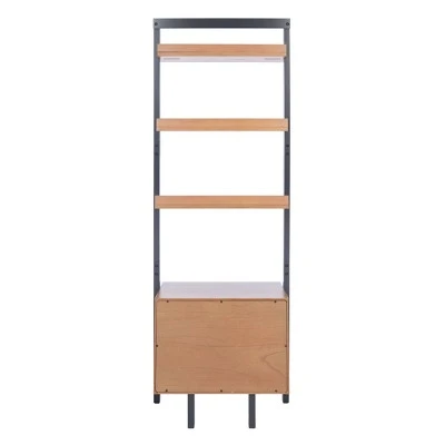 This Lavinia Etagere brings fabulous form and function to any small interior. Featuring a spacious bottom drawer and three gradated shelves in a warm natural finish, Lavinia’s narrow charcoal mahogany frame lends a touch of industrial chic flair to the crowded kitchen or multi purpose work space.