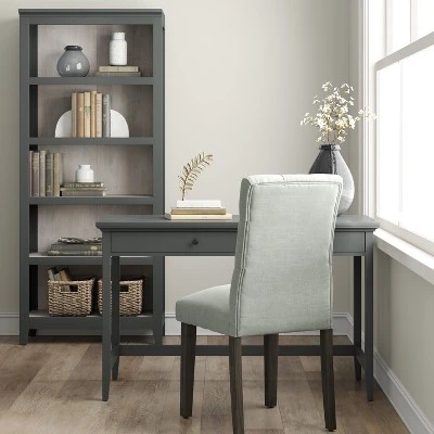 The Carson 5-Shelf Bookcase from Threshold is the perfect size and fit for any room in the home. Made from durable wood, this bookshelf features five spacious shelves for displaying your favorite books, art and collectibles. Clean, modern lines make this piece easy to mix in with any style of decor, whether in your bedroom, living room or home office.