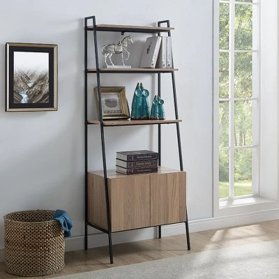 Love just a hint of privacy? Saracina Home’s Open Shelf and Closed Storage Cabinet Ladder Bookcase is the perfect fit for you. Utilize the upper, open shelves to house your favorite family photos or décor, and keep messier items or electronic components tucked away behind the two cabinet doors. Cord management keeps any cables tidy, while a wall anchor holds the bookcase neatly in place. Enjoy its elegant, leaning ladder silhouette and wonder how you ever went without such a sophisticated bookshelf. Place it in a hallway, living room, home office, or anywhere else you need a bit of organization. And as part of a larger collection, never run out of stylish furniture options.
