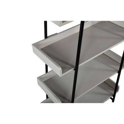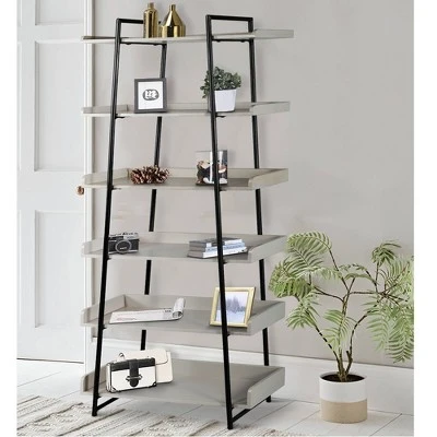 74" 6 Tier Wooden Ladder Storage Bookshelf with Metal Frame Gray/Black – The Urban Port