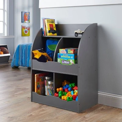 Badger Basket 4 Bin Storage Cubby with Bookshelf Charcoal