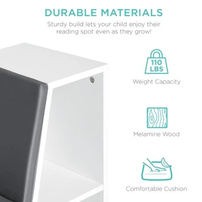 - CUSHIONED READING NOOK: Built with a comfortable area for kids to sit and crack open their favorite story; in case of crumbs and spills, just remove the cushions and wipe the wood with a damp towel