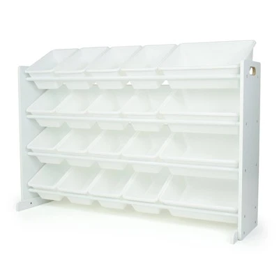 Playtime becomes more fun when your kids can easily take out their toys, books and games and then quickly clean up afterwards. The space-saving Humble Crew Extra Large Toy Storage Organizer with 20 Storage Bins offers 40% more storage than the leading organizer and is ideal for organizing your closet, play space, pantry, office, mudroom, child’s bedroom, playroom, nursery, living room, etc. BPA and phthalate free, 16 standard and 4 large storage containers are easy to remove, replace and reposition along the 4 tiered organizer shelves. Storage bins are sized just right within the toy organizer for toddlers and preschool aged children but versatile enough for use by adults as well. Sturdy engineered wood construction frame with stabilizing braces and steel shelving rods, 20 pound weight capacity per level. Some assembly is required. A great toy storage box alternative and the perfect organizational solution for any room within the home.