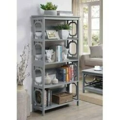 60" Omega 5 Tier Bookcase Driftwood Shelves/White – Breighton Home