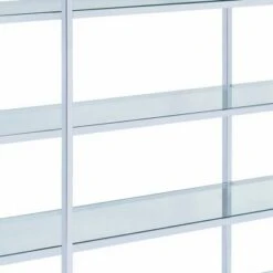 63" Bookcase with 5 Tempered Glass Shelves and Electroplated Frame Chrome – Benzara