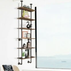 This 6-tier S-shaped bookcase is an eye-catching piece of modern furniture that can be coordinated with your other home decorations. With its sleek geometric shape and practical functions, this bookcase is widely applicable to various occasions, such as the lounge, living room, bedroom, office, etc. It provides 6 spacious open compartments, which not only can be used to display your souvenirs, trophies and collections, but can be used to store books, novels, and magazines. Each compartment has a large bearing capacity due to the sturdy wooden construction and wall-mounted anti-tilting device. The bookcase is not likely to wobble or collapse so that it is safer to use. Specification: Color: Coffee. Material: Engineering Board. Overall Dimension: 31.5” x 9” x 75” (L x W x H). Net Weight: 52.5 lbs. Shelf Height: 12”. Weight Capacity: 88 lbs. Package Includes:. 2 x Bookshelf. 1 x User’s Manual.
