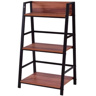 This is our 3-tier display shelf. It has a great design. It has three tiers. The top shelf is the smallest one and the bottom shelf is the biggest one. It has a big advantage that its top shelf has a back board, which helps to hold things placed on it. This display shelf is very useful, on which lots of things can be placed. For instance, you can put your books, vases, ornaments and other things on it. There is enough space for you to store your things. This display shelf is a good organizer for you. By using it, you can make your home neater and more compact. This display shelf is made of iron, which makes it become more sturdy and stable. You do not need to worry about its safety. Do not hesitate! Come and buy this fine display shelf! You will have a wonderful home decoration! Specification: Material:Steel + MDF. Overall Size:21.5”X14”X35.5”(LXWXH). Distance between each shelf:13.5”. Product Weight:17.1lbs. Max loading weight capacity:220lbs. Package Include:1 X Display Shelf.