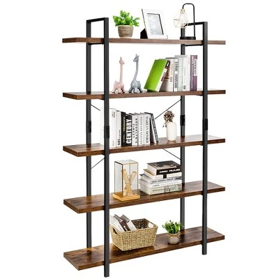 If you are looking for an ideal storage solution and want to add unique retro beauty to your living room, bedroom or study, this industrial bookshelf will do its magic! . Made of high-quality cellular board and iron, our 5-tier storage shelf is sturdy and durable for a long-time use. Equipped with anti-tip fittings, the bookcase can be anchored to the wall so as to avoid wobbling or tipping. And the x-shaped bracket at the back can reinforce its frame. This multipurpose shelf can be used as a bookcase, flower stand or display rack for holding books, photo frames, plants, etc. It can be widely used in living room, bedroom, kitchen and many other places. In addition, our easy-to-follow assembly instruction will guide you through each step! . Specification: Material: Cellular Board + Iron. Color: As the picture shows. Overall Dimension: 47” x 11” x 70” (L x W x H) . Net weight: 41 lbs. Weight Capacity of Each Shelf: 44 lbs. Package includes: . 1 x 5-Tier Bookshelf. 1 x Instruction.