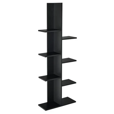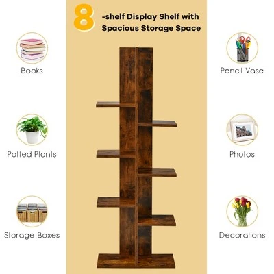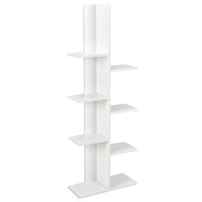 Are you looking for a versatile bookshelf to keep your daily essentials and display decorations well-organized? . Our bookshelf is your great option which is a combination of decoration and function. Thick board makes the shelf quite sturdy for durable usage. 8-tier storage shelves provides ample space for storing and displaying collections, books, photos and so on. The non-slip foot pads and anti-dumping device enhance the overall stability of bookshelf. It can be used not only as a bookcase, but also as a display shelf in the living room and plant stand in the balcony. Simple and modern design makes this bookshelf suitable for any room style and adds highlight to your home. . Specification: Color: BlackWhite. Material: Engineered Wood. Overall Dimension: 20”(L) x 8”(W) x 55.5”(H) . Height from Shelf to Ground(Left): 1”, 16.5”, 29”, 42” (H) . Height from Shelf to Ground(Right): 1”, 12”, 24.5”, 37” (H) . Net Weight: 22lbs. Weight Capacity of Each Shelf: 22lbs. Package includes: . 1 x Bookshelf. 1 x User Guide.