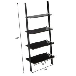 Costway Industrial Ladder Shelf 4-Tier Leaning Wall Bookcase Plant Stand Rustic Black/Brown