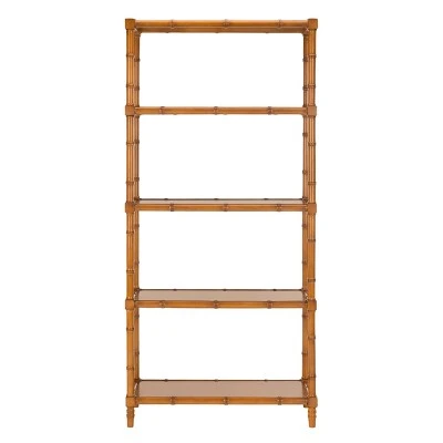Bright and refreshing, this modern coastal four tier étagère is a contemporary classic. Its lacquered bamboo design adds relaxed sophistication to any living room or office. The four shelves provides ample storage and makes it a smart investment. Perfect for transitional styled rooms, this étagère can be used to display several items with its sturdy structure. Crafted of MDF wood and NC coating, this étagère will be a great classic. Assembly is required for this item.