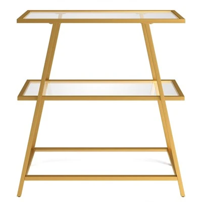 A unique angled profile sets this industrial-inspired bookcase apart. Its diagonal frame leans in to support and frame the durable tempered shelves, creating an artful backdrop for your books, framed photos, or collections of decorative items. The streamlined look and neutral metallic finish pairs seamlessly with your existing color scheme and décor style.Features : Handcrafted finish is applied to the steel frame.Shelves are made of durable tempered glass.Each shelf can hold 30 lbs.Features easy assembly.Clean with a soft, dry cloth; no harsh chemicals or abrasive cleaning materials.Specifications : Product Dimensions : 14″ x 34″ x 36″Product Weight : 36.38 lbs