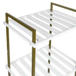 Finding small space storage can be challenging. Not anymore. This 2-tier storage shelf caddy provides excellent small space storage with its two baskets and A-frame shape, and it has a soft and subtle aesthetic that fits into any decor.