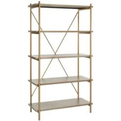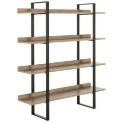 Inspired by Italy’s greatest contemporary architect, this Mid-Century étagère pairs style and substance. Designed with an oak finish and iron, its dramatic geometric angles create an artistic focal point and elegant layers of storage in any living room. Strikingly simple, this hardworking piece maximizes storage with its four levels of large shelves and it can support up to fifty pounds. The Louise étagère is the ideal choice for Contemporary, Mid-Century, Modern, Rustic or Transitional style rooms.