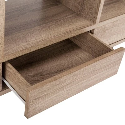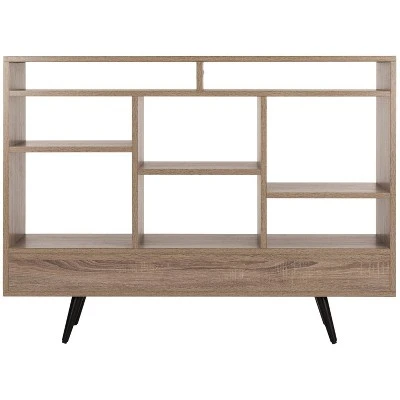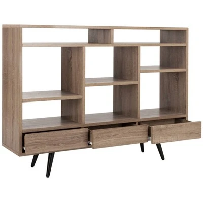Inspired by Dubai’s design collector’s fair, this mid-century étagère is a contemporary classic. Its ample asymmetrical shelves and three drawers feature a smooth oak finish and bold black sputnik-style legs to create a luxurious statement in any living room. Showcase your items with style with its multi-shape shelves or keep them tucked neatly away by utilizing its three drawers. The Marina Retro Wooden étagère is a wonderful addition for contemporary and modern rooms. It requires assembly.