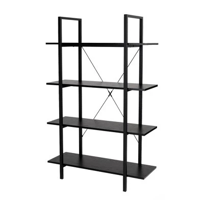 Modern Industry Metal/Wooden 4 Tier Bookcase with Shelves – Glitzhome Black