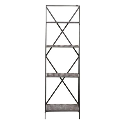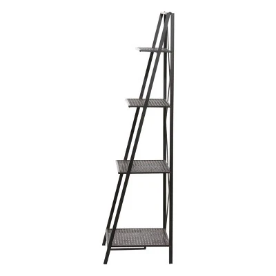 Be practical and elegant in organizing your industrial home space with this black industrial 4 tier ladder shelf. Organizing isn’t boring when you have amazing wall shelves to fill. Whether used as a focal point, or to display your favorite things, this wall shelf it the perfect addition to any home. This item comes shipped in one carton. Suitable for indoor use only. Industrial theme. Maximum weight limit for shelf is 30 lbs.