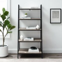 72″ Open Storage Ladder Bookshelf – Saracina Home Dark Walnut