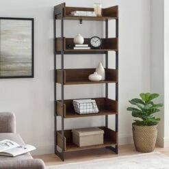 68″ Anti Gravity Inverted V Bookshelf – Saracina Home Dark Walnut