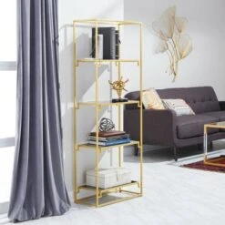 70″ Wood 4 Shelf Leaning Shelf Book Shelf Brown – Olivia & May
