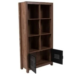Fariat Walnut Wood and Metal Display Shelf with Desk Brown/Black – Baxton Studio