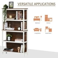 HOMCOM 4 Tier Bookshelf Utility Storage Shelf Organizer with Back Support