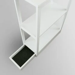 34″ Adams 3 Shelf Bookcase with Concealed Sliding Track White – Flora Home