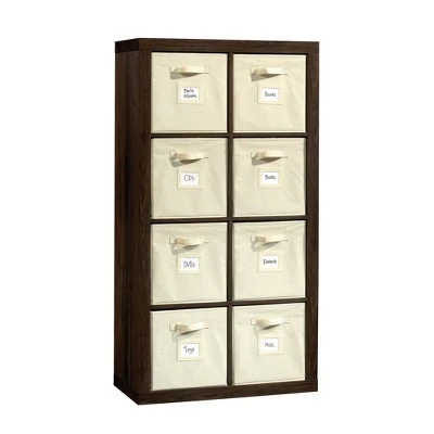 Tidy up your home with this 8-cube organizer from the Sauder Stow-Away collection. It features eight storage cubbyholes, each of which include a fabric storage bin so you can organize and contain your clutter in style. Its versatile design allows you to position it horizontally or vertically while using the cubbyholes as either storage or display. Finished in Smoked Oak, this organizer will take your home from mess to yes in no time.