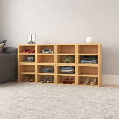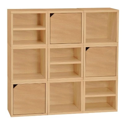 Way Basics Eco Stackable Connect Cube with Shelf Modular Cubby Organizer Storage System Natural Wood Grain